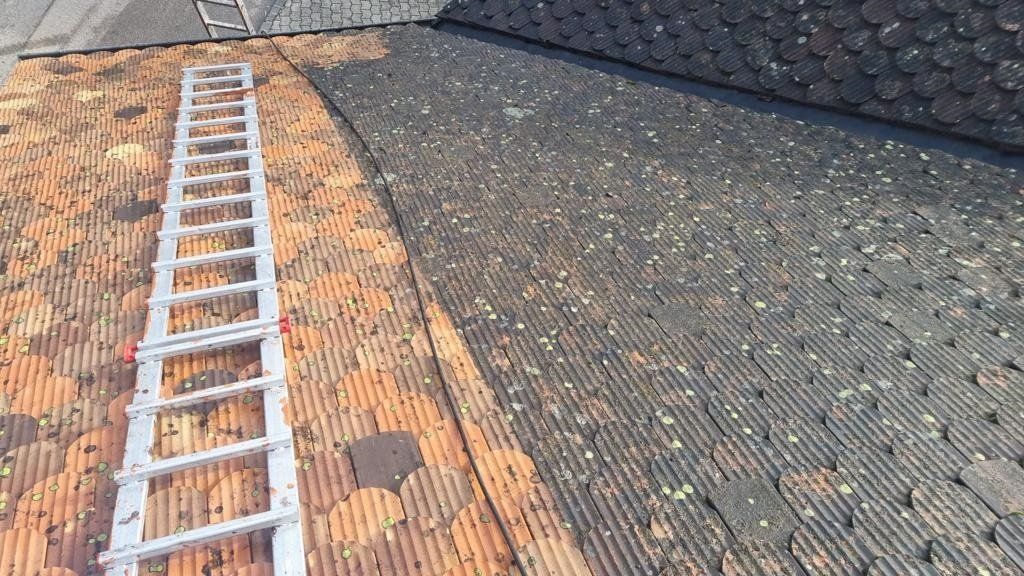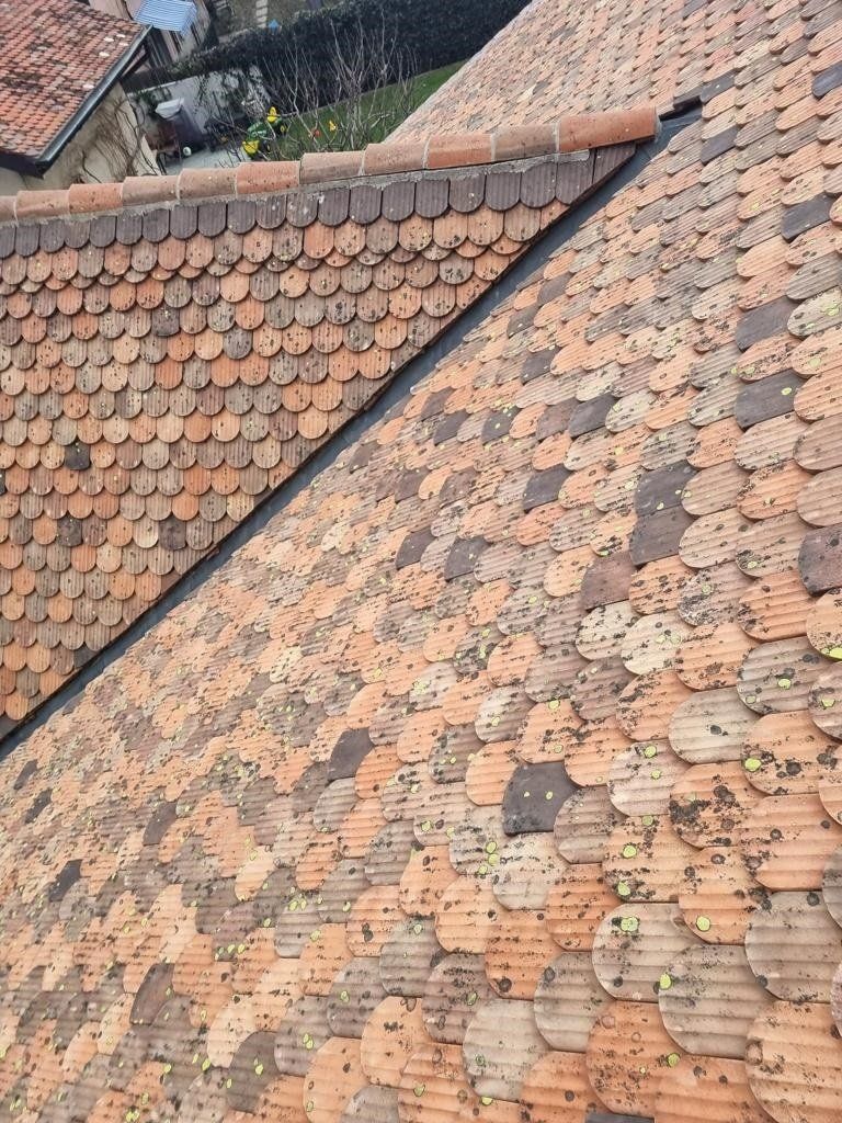 Nettoyage et démoussage toiture à Athis-Mons avec karcher. L'on va supprimer les mousses et saletés puis lui appliquer un traitement antimousse et à l'hydrofuge pour un nettoyage et démoussage complet.