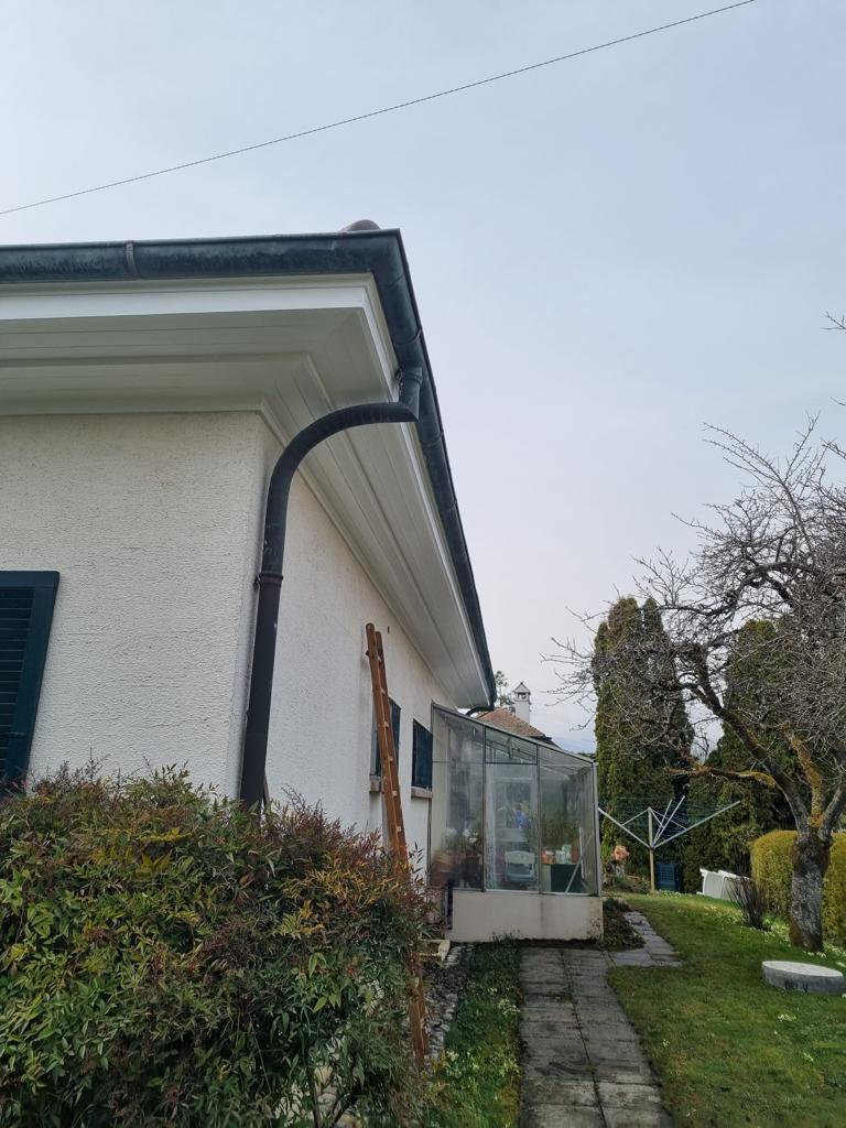 Nos photos montrent nos travaux de toiture avece réparation de charpente, changement de chenaux et changement de gouttières à Rouen.